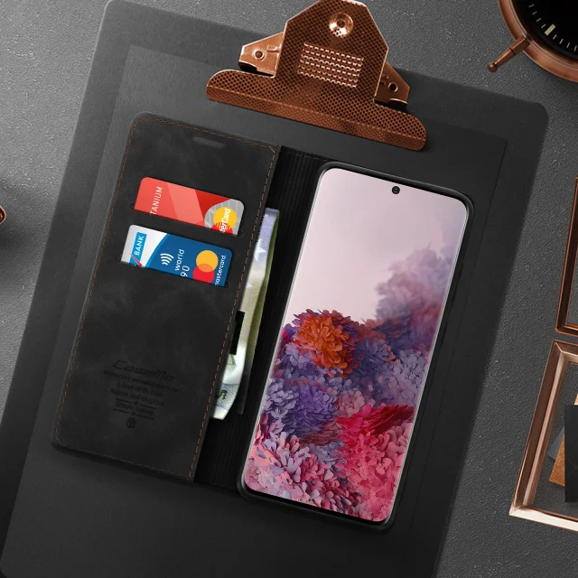 Zaščitni ovitek posebej zasnovan za Samsung Galaxy S20. Popolnoma ščiti vaš pametni telefon pred vsakodnevnimi udarci in praskami. Vintage oblazinjenje iz ekološkega usnja s šivanimi zaključki za trendovski videz. Silikonski ovitek po meri z dostopnimi priključki in preoblikovanimi gumbi.