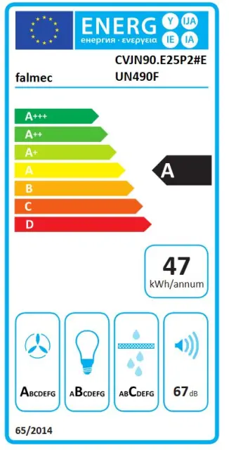 Tehnične specifikacije: širina 86,1 cm, globina 31 cm, višina 34 cm; minimalna montažna razdalja od kuhalne plošče znaša 52 cm, tako pri električnih kot plinskih štedilnikih . Deluje z napetostjo 220–240 V, frekvenco 50 / 60 Hz in maksimalno porabo 280 W. Pri največji moči doseže raven hrupa okoli 67 dB. Energijski razred naprave je ocenjen kot A.