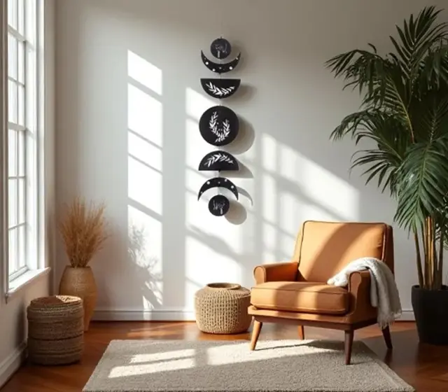 Stenska dekoracija Happilax Moon Phases je idealna izbira za vse, ki želijo svojo notranjost obogatiti z unikatnim in ročno izdelanim elementom dekorja. Subtilna girlanda v boho slogu ustvarja vzdušje sproščenosti in harmonije, njen edinstven dizajn pa poskrbi, da v prostoru doda poseben čar. Okrasite svoj dom s tem estetskim dodatkom in občutite čarobnost lune v svojem osebnem ambientu še danes.