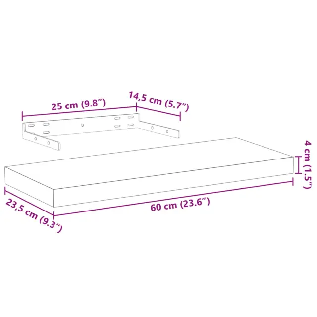 Viseča Polica - Stenska polica 60x23,5x4 cm inženirski les