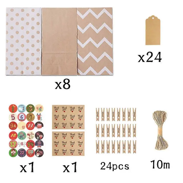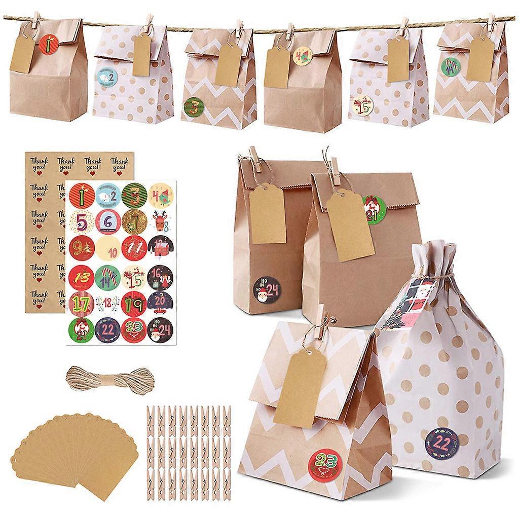 Viseče vrečke za božični adventni koledar 24-dnevne vrečke za sladkarije z božičnimi elementi z nalepkami s številkami Ročno izdelane DIY vre