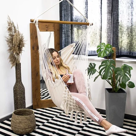 Viseči gugalnik SPRINGOS z 2 blazinama za stropno montažo za notranjo in zunanjo uporabo do 150 kg.