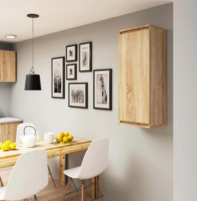 Predstavljamo viseči omarico, ki bo zagotovo pritegnila tiste, ki imajo raje sodoben slog. Pohištvo je zasnovano v minimalističnem slogu - preprostost in eleganca bosta zagotovo delovali v vsakem oblikovalskem interierju. Razstava je sestavljena iz treh prostornin polic, ki jih je mogoče uporabiti za shranjevanje knjig, albumov, plošč, pa tudi mnogih drugih predmetov.