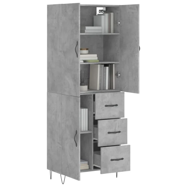 Visoka Komoda - Predalnik betonsko siva 69,5x34x180 cm inženirski les