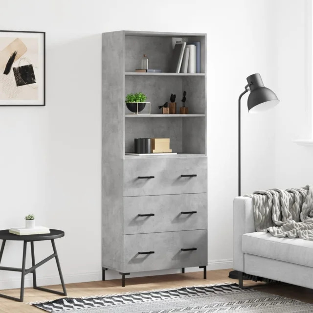 Visoka Komoda - Predalnik betonsko siva 69,5x34x180 cm inženirski les