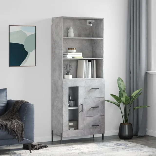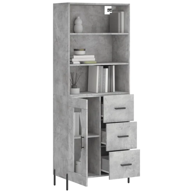 Visoka Komoda - Predalnik betonsko siva 69,5x34x180 cm inženirski les