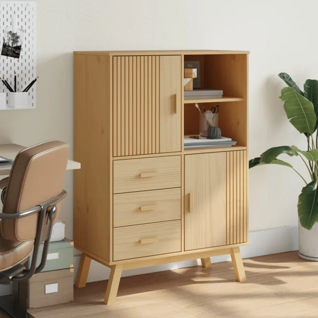 Visoka Komoda - Predalnik OLDEN rjava 85x43x125 cm trdna borovina