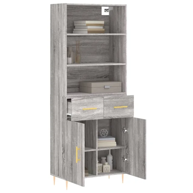 Visoka Komoda - Predalnik siva sonoma 69,5x34x180 cm inženirski les