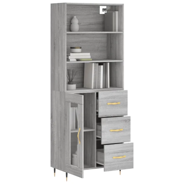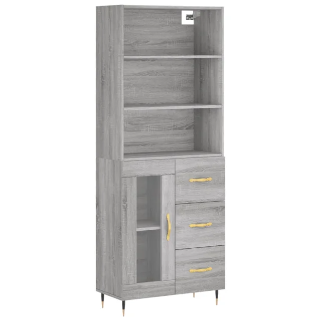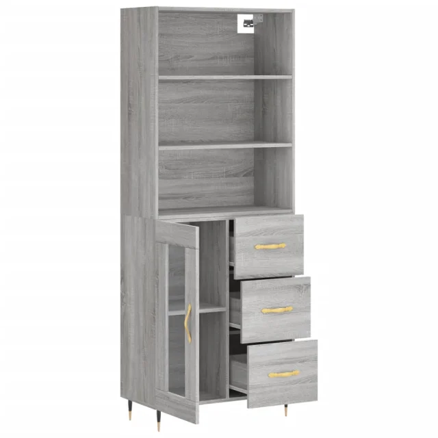 Visoka Komoda - Predalnik siva sonoma 69,5x34x180 cm inženirski les