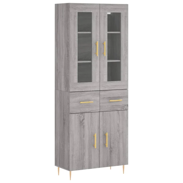Visoka Komoda - Predalnik siva sonoma 69,5x34x180 cm inženirski les