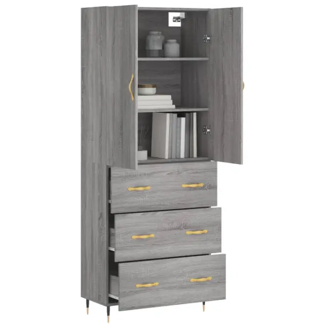 Visoka Komoda - Predalnik siva sonoma 69,5x34x180 cm inženirski les
