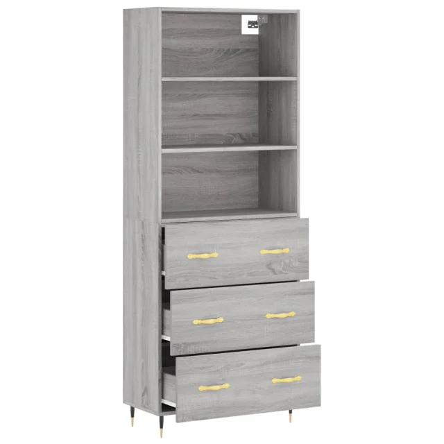Visoka Komoda - Predalnik siva sonoma 69,5x34x180 cm inženirski les