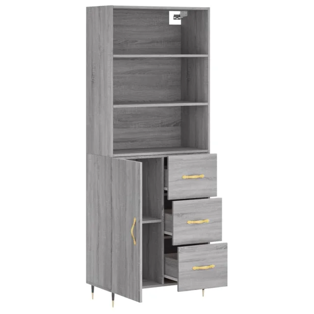 Visoka Komoda - Predalnik siva sonoma 69,5x34x180 cm inženirski les