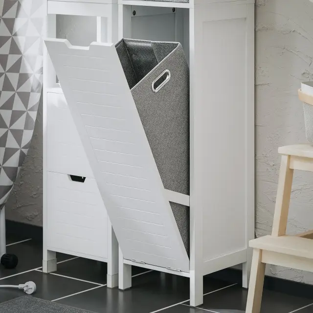 Visoka kopalniška omarica z belo zložljivo vrečko za perilo