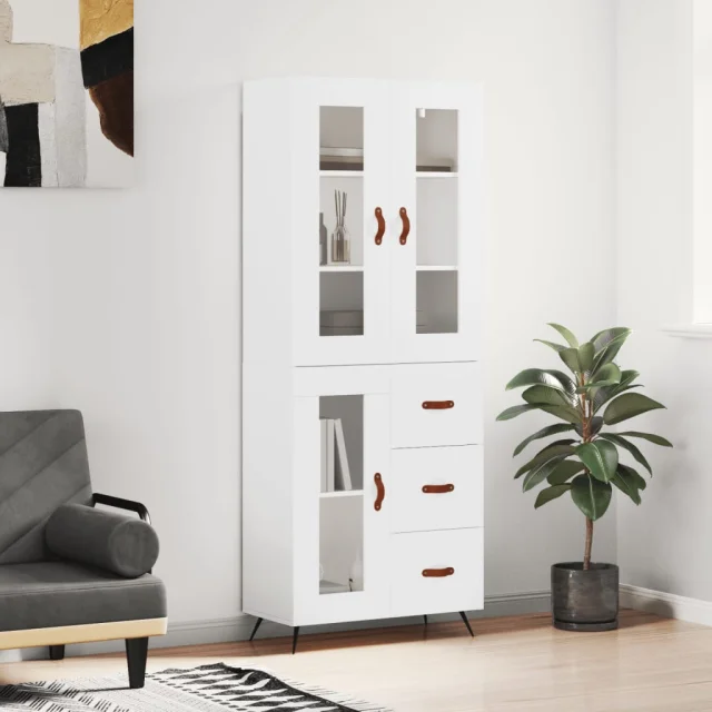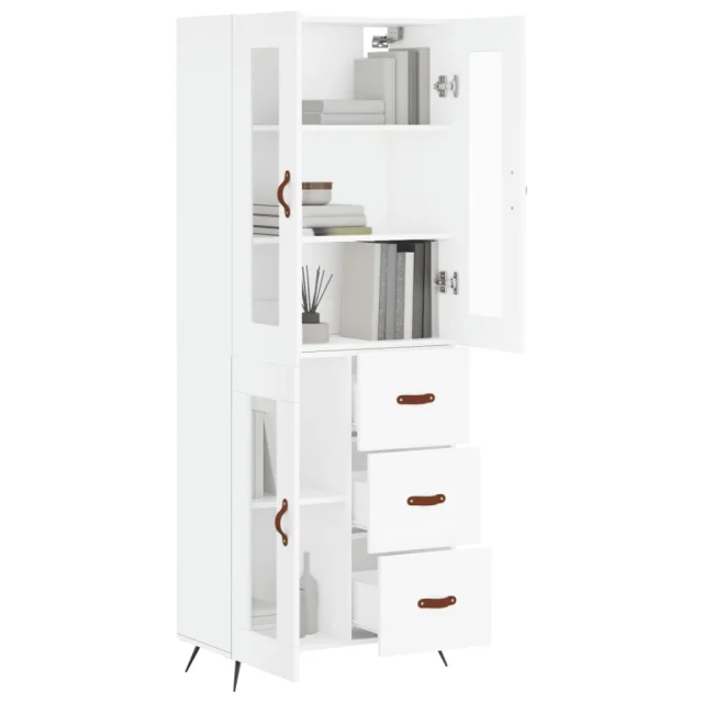 Visoka omara - Komoda - Predalnik bela 69,5x34x180 cm inženirski les