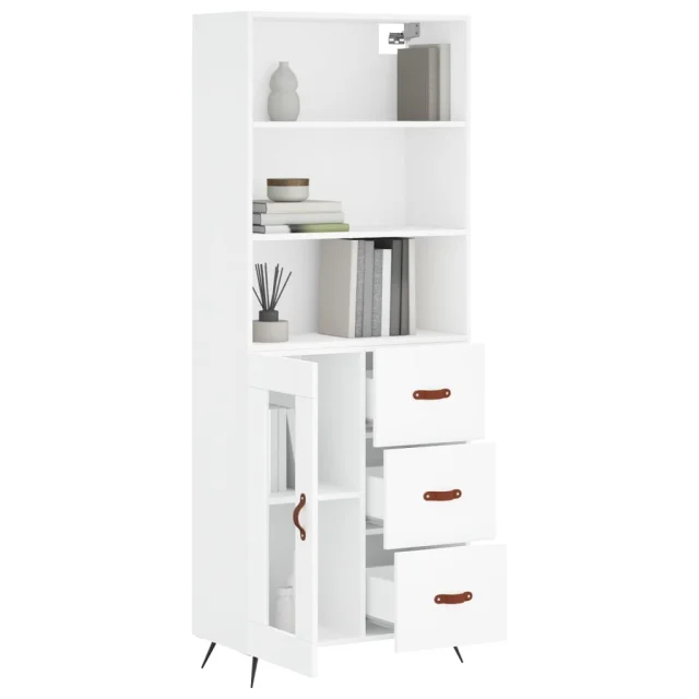 Visoka omara - Komoda - Predalnik bela 69,5x34x180 cm inženirski les
