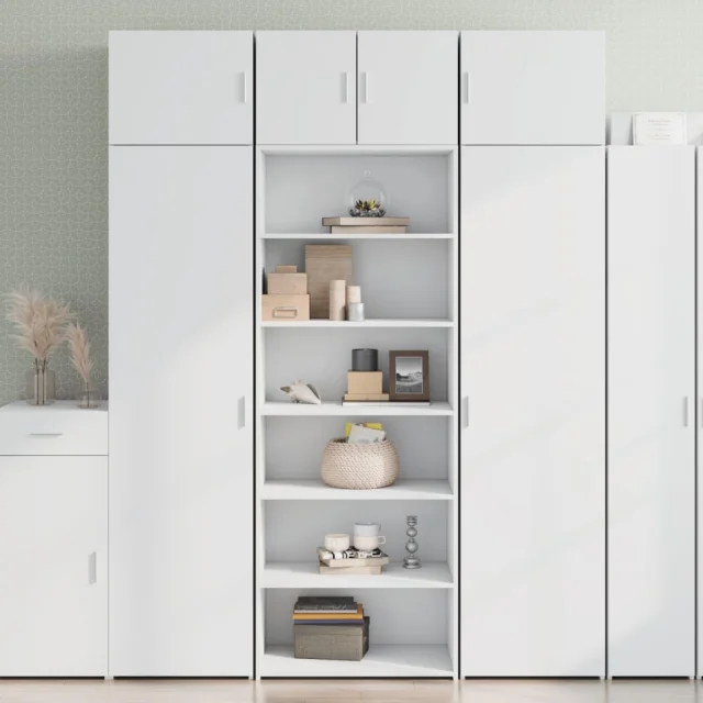 Visoka omara - Komoda - Predalnik bela 70x41x185 cm inženirski les