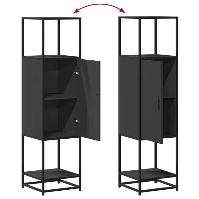 Visoka omara - Komoda - Predalnik črna 35,5x35x139 cm inženirski les in kovina