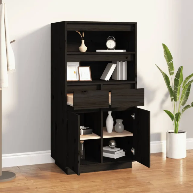Visoka omara - Komoda - Predalnik črna 60x40x116,5 cm trdna borovina