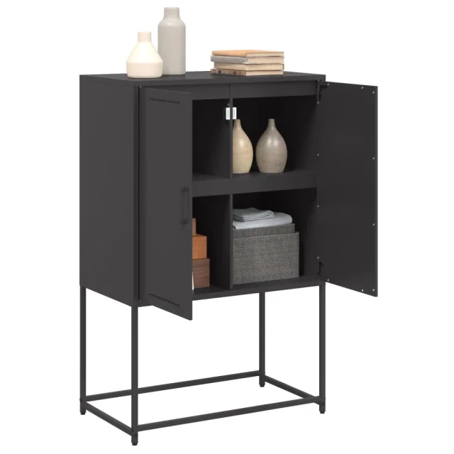 Visoka omara - Komoda - Predalnik črna 68,5x38,5x107 cm jeklo
