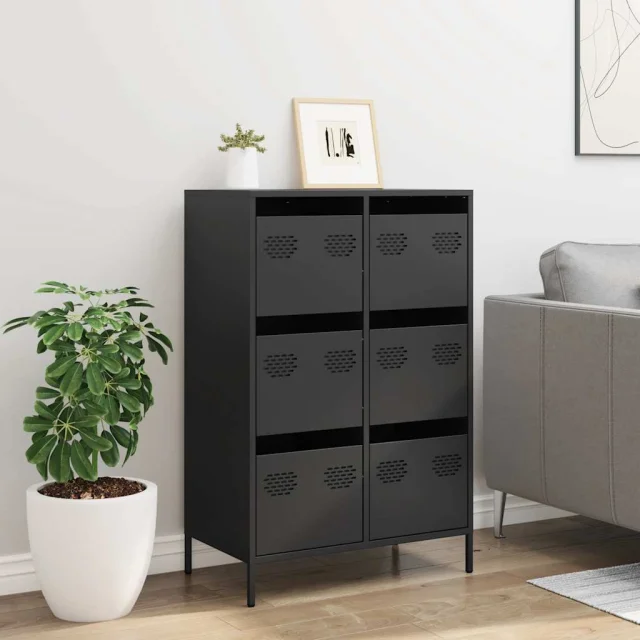 Visoka omara - Komoda - Predalnik črna 68x39x101,5 cm jeklo