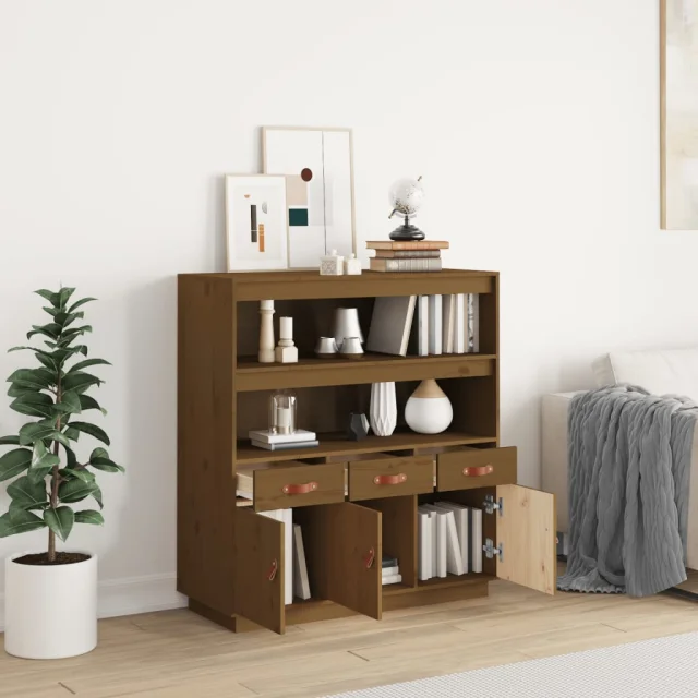 Visoka omara - Komoda - Predalnik medeno rjava 100x40x108,5 cm trdna borovina