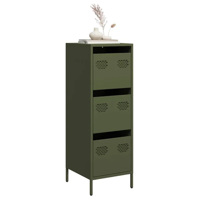 Visoka omara - Komoda - Predalnik olivno zelena 39x35x103,5 cm jeklo