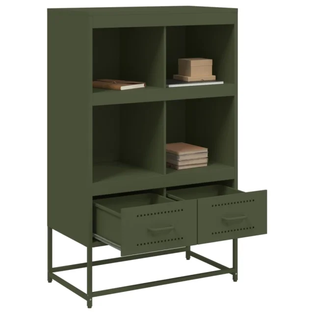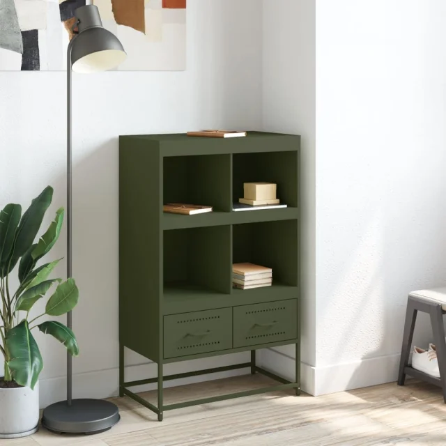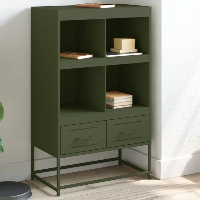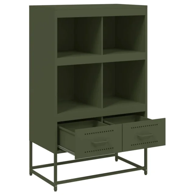Visoka omara - Komoda - Predalnik olivno zelena 68x39x111,5 cm jeklo