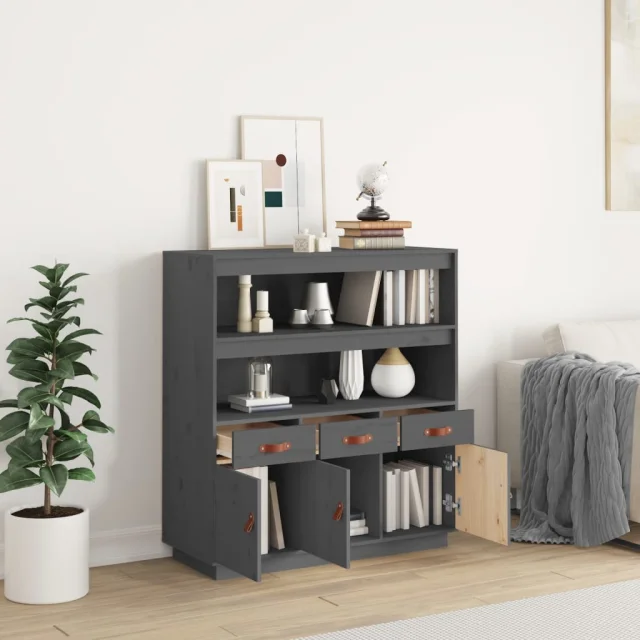 Visoka omara - Komoda - Predalnik siva 100x40x108,5 cm trdna borovina