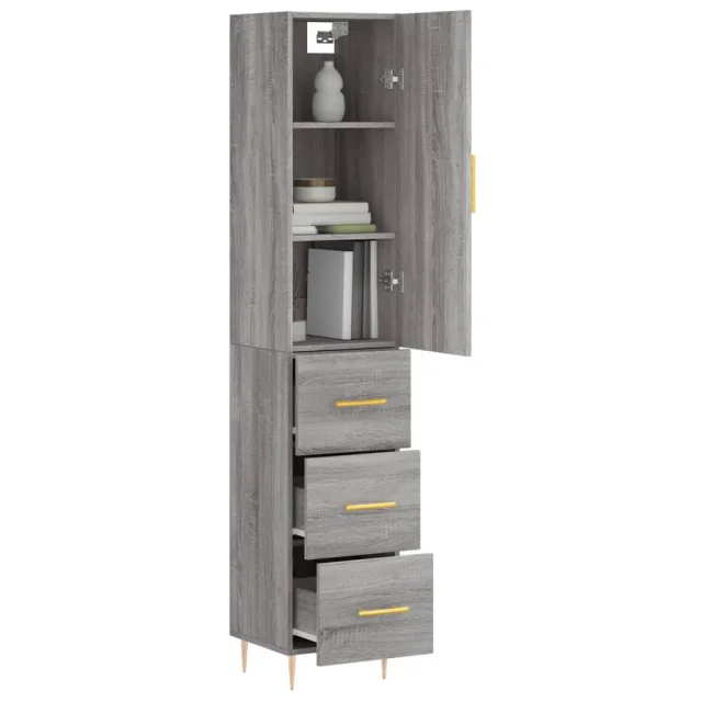 Visoka omara - Komoda - Predalnik siva sonoma 34,5x34x180 cm inženirski les