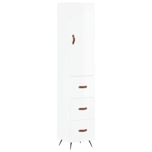 Visoka omara - Komoda - Predalnik visok sijaj bela 34,5x34x180 cm inženirski les