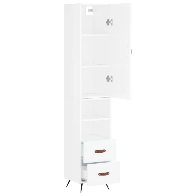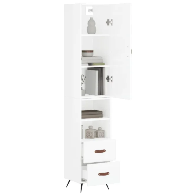 Visoka omara - Komoda - Predalnik visok sijaj bela 34,5x34x180 cm inženirski les