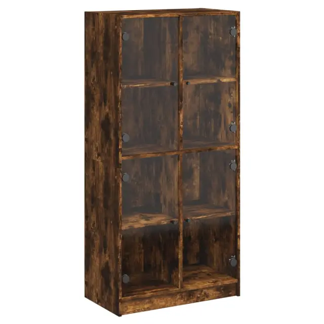 Visoka omara - Komoda - Predalnik z vrati dimljeni hrast 68x37x142 cm inženirski les