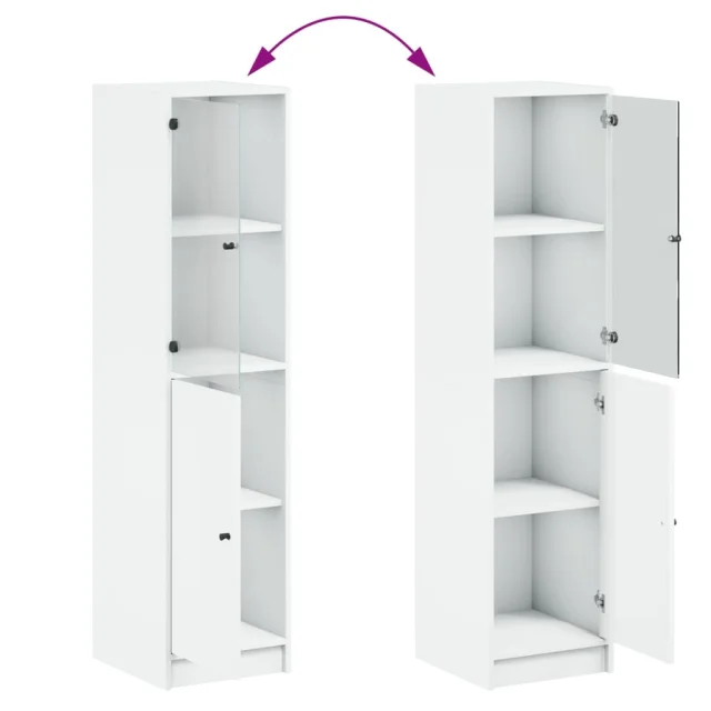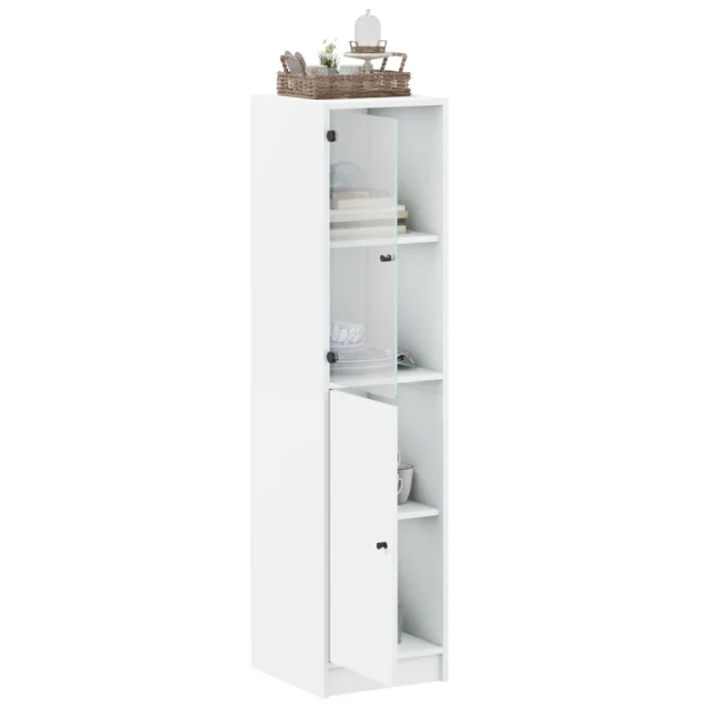 Visoka omara - Predalnik - Komoda s steklenimi vrati bela 35x37x142 cm