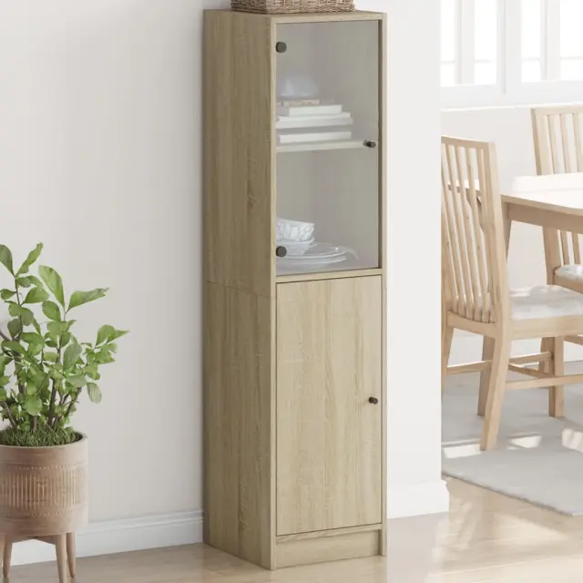 Visoka omara - Predalnik - Komoda s steklenimi vrati sonoma hrast 35x37x142 cm