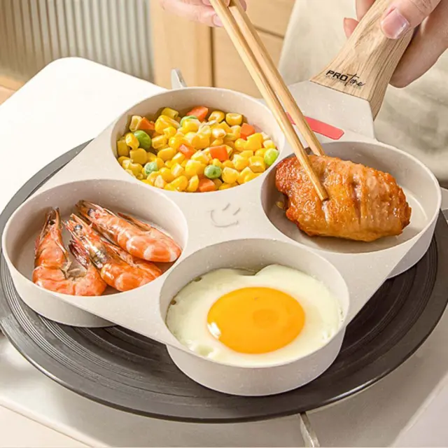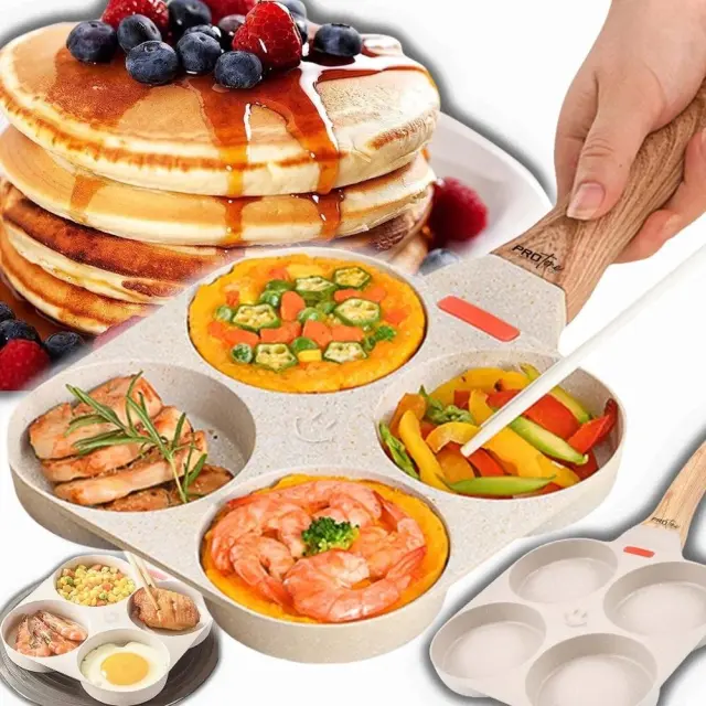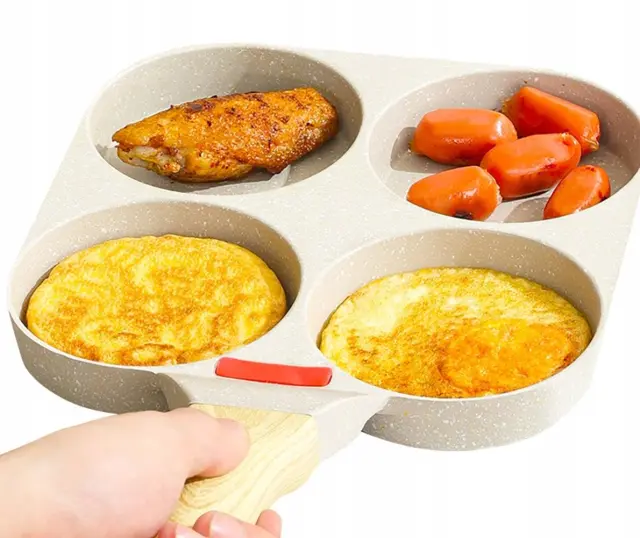 Ponev s 4 polji je nepogrešljiv pripomoček v vsaki kuhinji! Zahvaljujoč njej lahko hitro ocvrete svoje najljubše jedi. Vaše palačinke in palačinke bodo vedno popolnoma enakomerne. Premaz proti prijemanju pomeni, da lahko za peko porabite do 80 % manj maščobe! Zahvaljujoč temu boste jedi pripravili ne le hitro, ampak tudi zdravo. Ustvarite nove recepte ali kuhajte, kar vam je najbolj všeč.