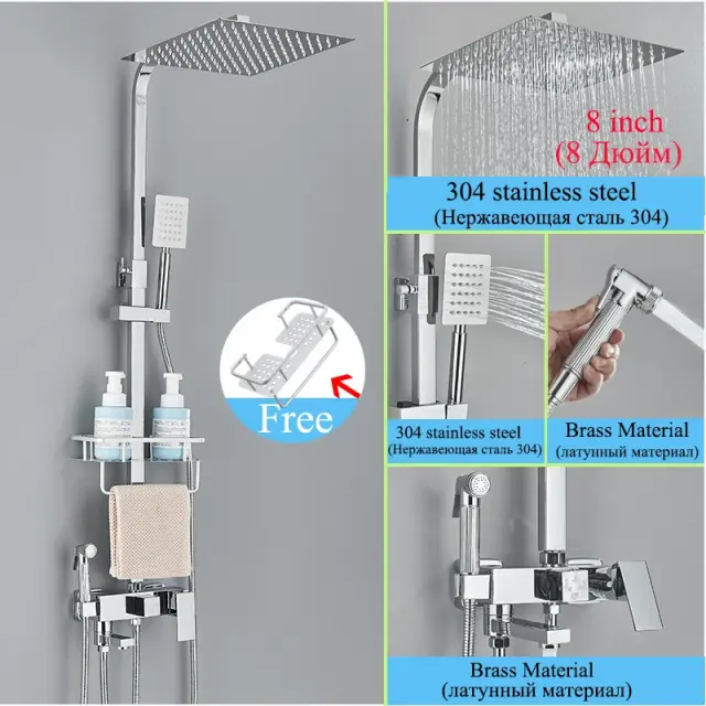 Visokokakovostni set tuš pipa, 304 nerjaveče jeklo, nastavljiva višina, 4-načina 8inch D