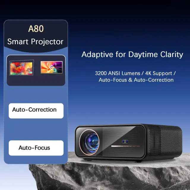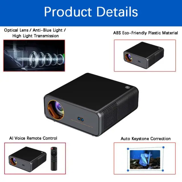 Smart & Automated Features: Uživajte v preprosti namestitvi s samodejnim ostrenjem, samodejno korekcijo trapezne slike in samodejnim izogibanjem oviram. Projektor inteligentno prilagodi sliko za optimalen ogled brez ročnega posredovanja. Samodejna korekcija trapezne slike zagotavlja popolno pravokotno sliko, tudi ko je projektor postavljen pod kotom. Samodejno izogibanje oviram inteligentno zazna in se izogne oviram, kar zagotavlja nemoteno izkušnjo gledanja. Ponaša se tudi z vgrajenim operacijskim sistemom Android. Dostopajte do storitev pretakanja, kot sta YouTube in Netflix, neposredno. Izkusite udobje pametnega projektorja, zasnovanega za enostavno uporabo in optimalno delovanje. Je združljiv z napravami HDMI, USB in Bluetooth, kar omogoča brezhibno povezljivost z različnimi medijskimi viri.
