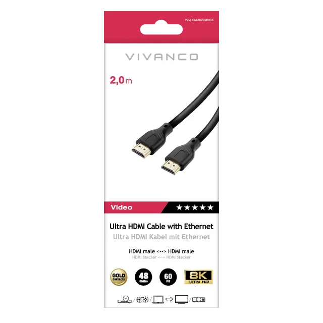 Kabel VIVANCO ULTRA HDMI, 8K/60HZ M-M 2 m, črn