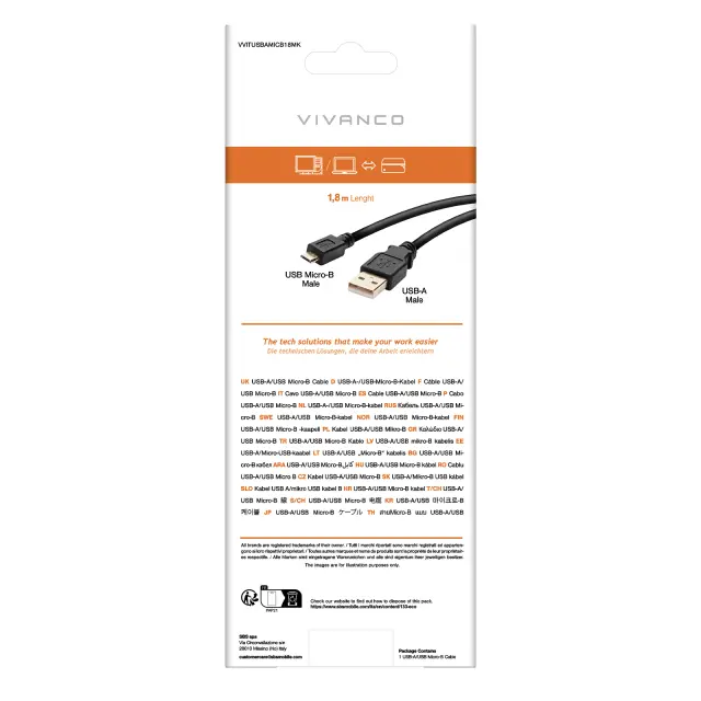 Podatkovni kabel VIVANCO USB 2.0, A-MICRO B, 1,8 m