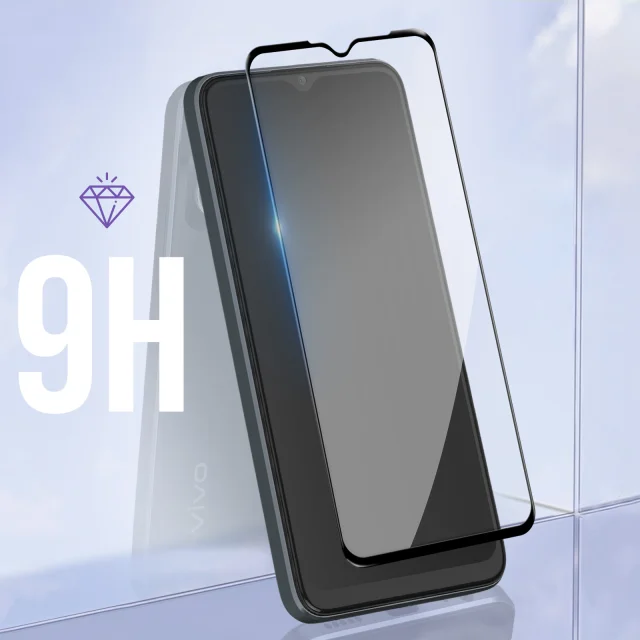 Vivo Y16 in Y02s kaljeno steklo, 9H odporno in protieksplozijsko prozorno - crna kontura