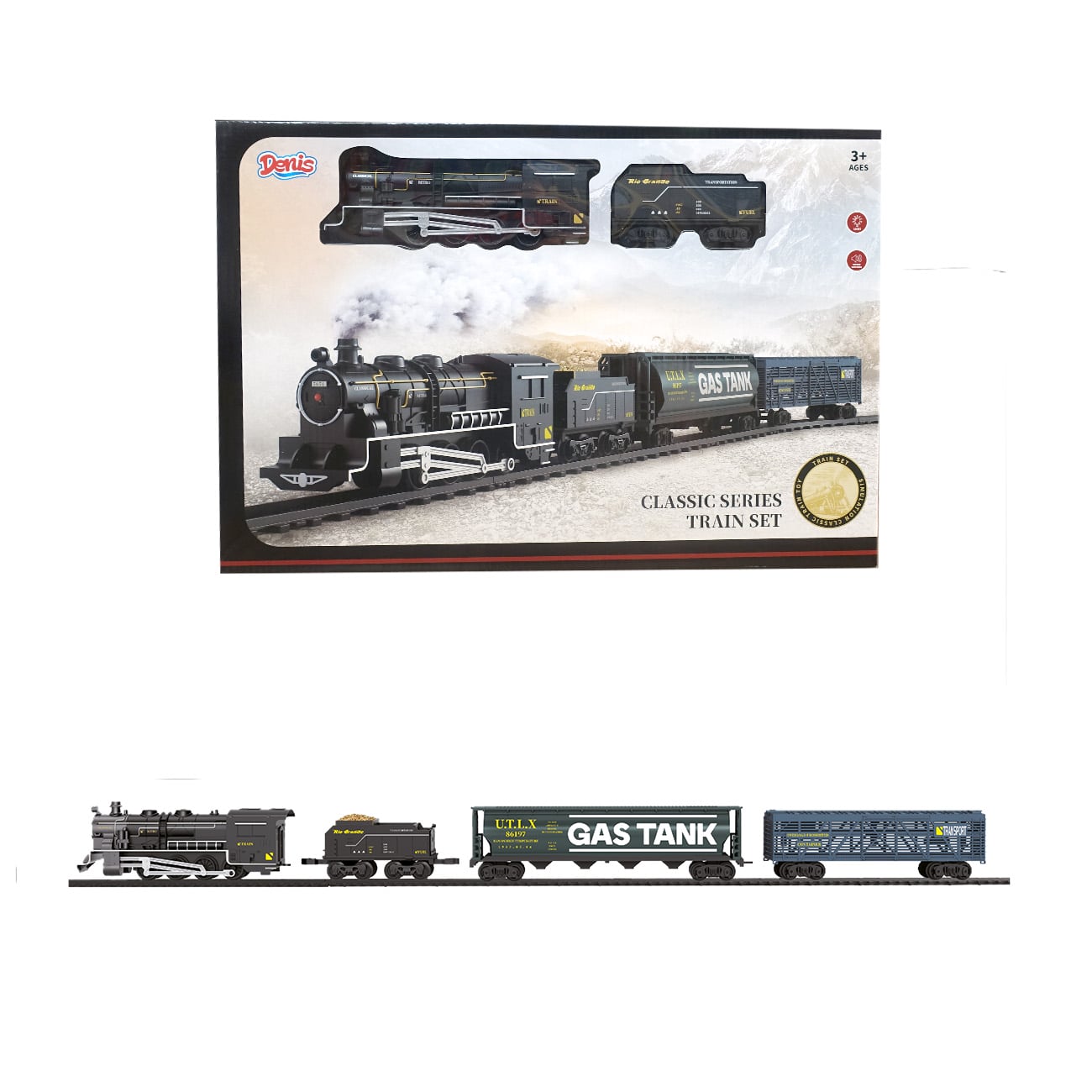 Ta vlakec bo navdušil tako mlade kot starejše. Popolna replika klasične lokomotive na premog z vagoni za prevoz goriva in raznih tovorov. Otroci se bodo zelo zabavali pri povezovanju tirnic in postavljanju vlakca, še bolj pa ko bodo vlakec spustili čez tire. Za otroke je to odlična priložnost za ustvarjalno igro, razvijanje domišljije in igranje vlog. Igrača, ki vas bo zabavala ure in ure.