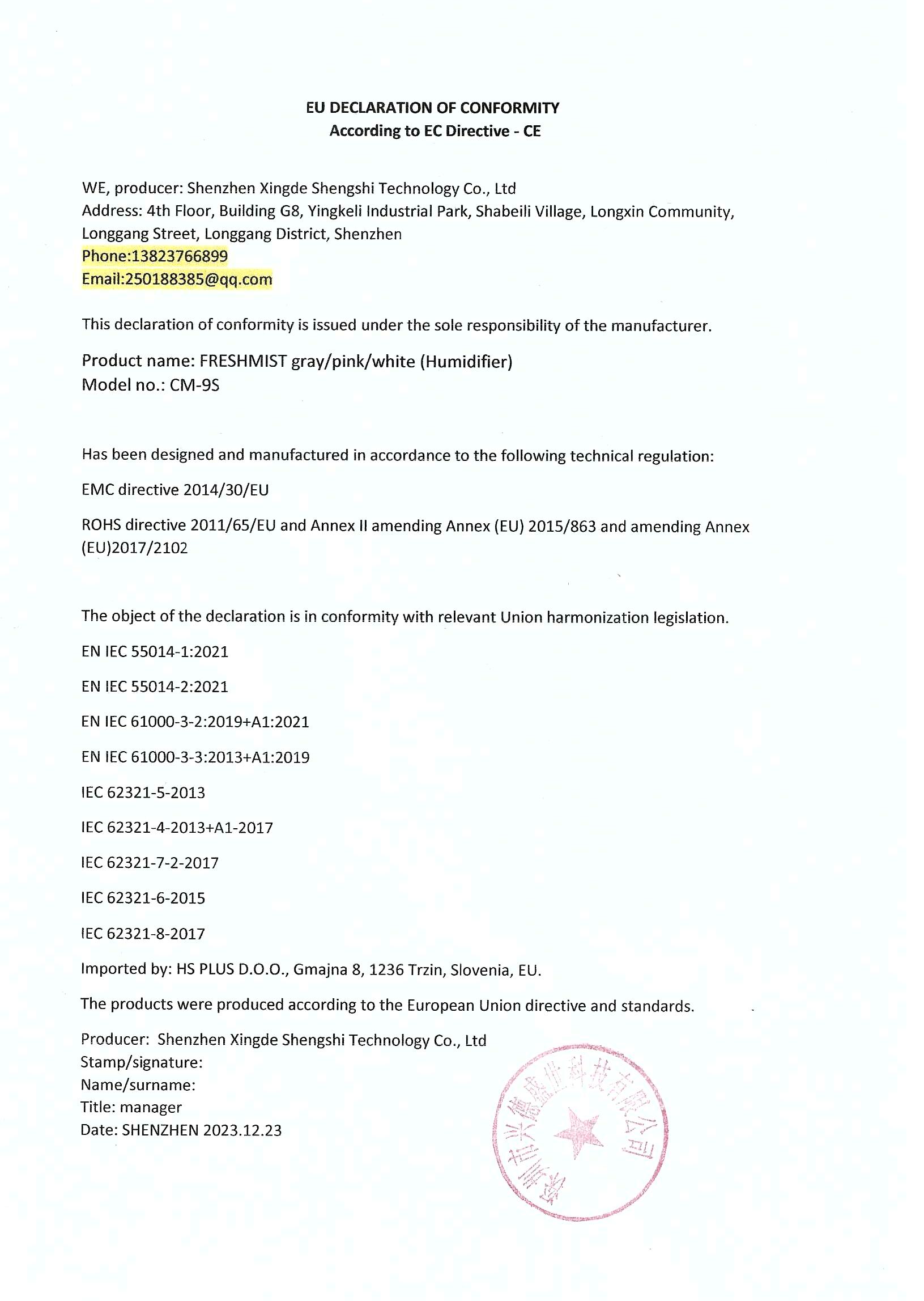 Vlažilec zraka s pomirjujočo svetlobo| FRESHMIST Bela