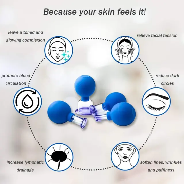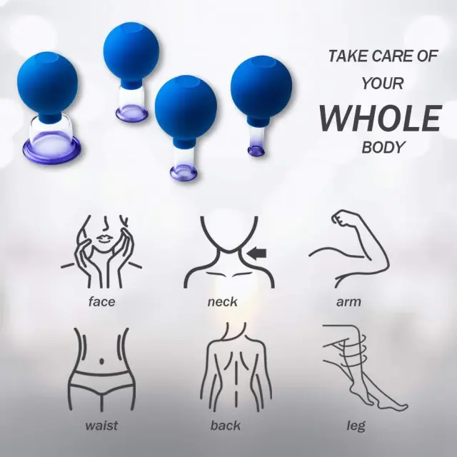 Deluje za celotno telo: Ta komplet vsebuje štiri priseske v različnih velikostih za zdravljenje različnih delov telesa. Manjše so bolj gladke in jih je bolje uporabiti za obraz, večje pa za telo.