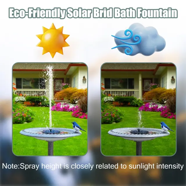 1. Ta izdelek je vodna črpalka na sončno energijo brez zunanje baterije. Višina vodnega curka je v celoti odvisna od moči sonca. Ko je sonce šibko, črpalka ne bo delovala neprekinjeno, ampak se bo samodejno zagnala, dokler ne bo imela dovolj energije, da se vrne v način neprekinjenega delovanja. Izdelek postavite na neposredno in prosto sončno svetlobo. V senci črpalka ne prejme dovolj energije za normalno delovanje.