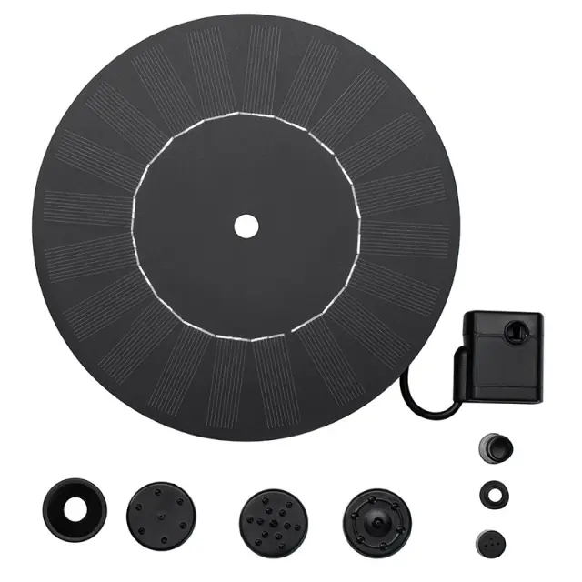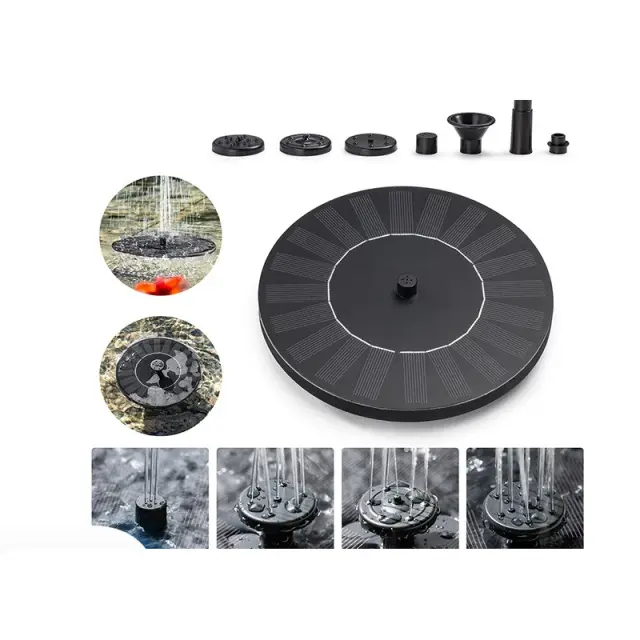 OPOMBA: 1. Ta izdelek je vodna črpalka z neposrednim pogonom brez zunanje baterije. Višina pršenja vode je v celoti odvisna od moči sonca. Ko je sonce šibko, črpalka ne bo delovala neprekinjeno, ampak se bo samodejno zagnala, dokler sonce spet ne doseže. Po določeni intenzivnosti se črpalka vrne v način neprekinjenega delovanja. Med uporabo postavite izdelek na neposredno sončno svetlobo. Senčenje bo vplivalo na normalno delovanje črpalke.