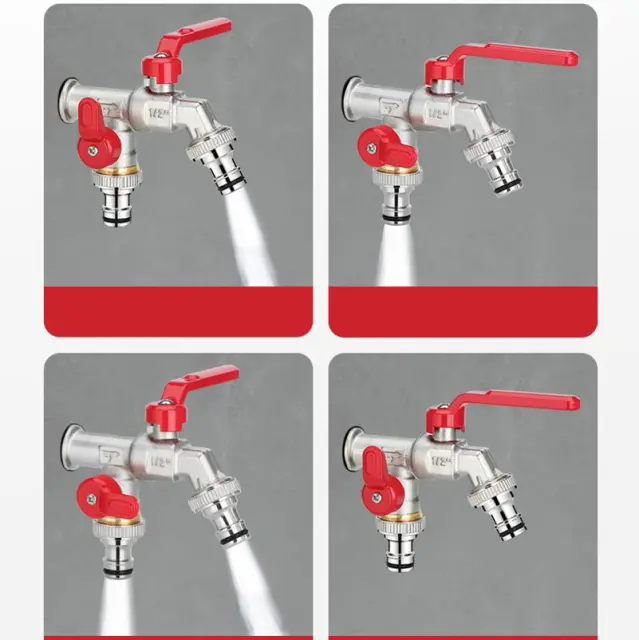 Dvojni izhodi: z dvojnimi glavami in priključki 1/2", 3/4" in 3/4" ta pipa ponuja vsestransko uporabo. Omogoča preprosto priključitev različnih cevi in dodatkov, zaradi česar je idealna za vse, od namakanja do vrtnarjenja. čiščenje in pranje avtomobila.