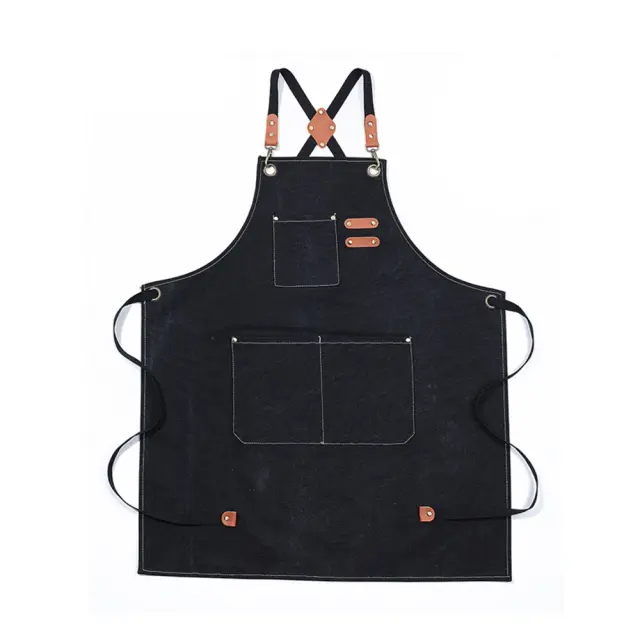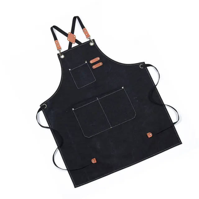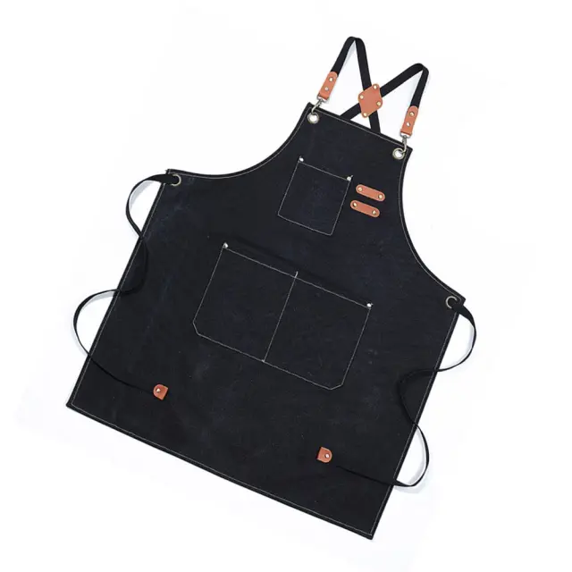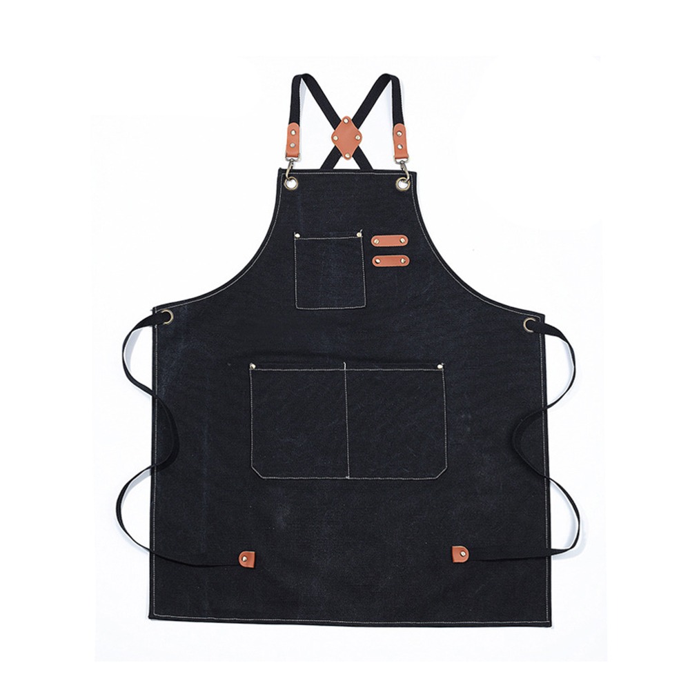 Vodoodporen bombažni predpasnik, odporen na olje, z žepi - Idealen za kuhinjo Black
