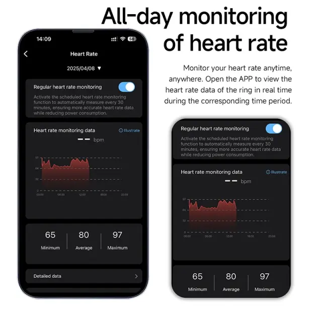 Celovito spremljanje zdravja: Prstan spremlja srčni utrip, spanje in druge vitalne znake. Aplikacija RWFIT ponuja podrobne analize in vpoglede v vaše zdravje. Spremljajte trende srčnega utripa, analizirajte kakovost spanja in pridobite osebne nasvete za izboljšanje vašega dobrega počutja. Ostanite obveščeni o svojem zdravju in sprejemajte premišljene odločitve.