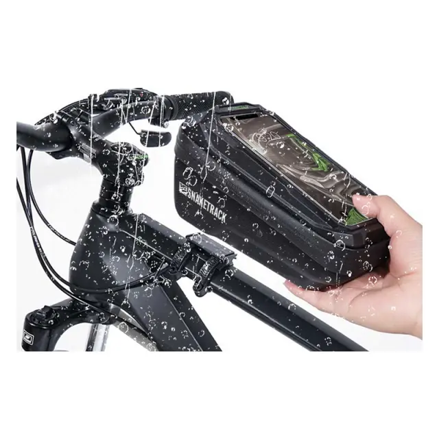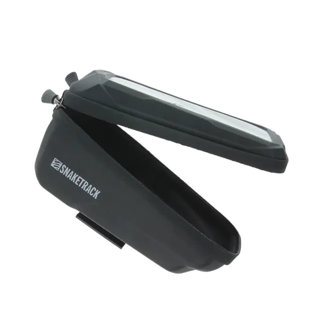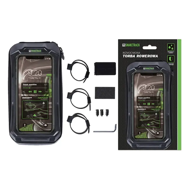 Vodoodporna kolesarska torba Snake Track vam omogoča priročno uporabo telefona ali navigacije med kolesarjenjem tudi v deževnem vremenu. Ojačana zasnova "hard-shell" in velika prostornina (1l ) vam omogočata varno prenašanje majhnih predmetov, kot so ključi, orodje, denarnica, telefon, zaponka za kolo.